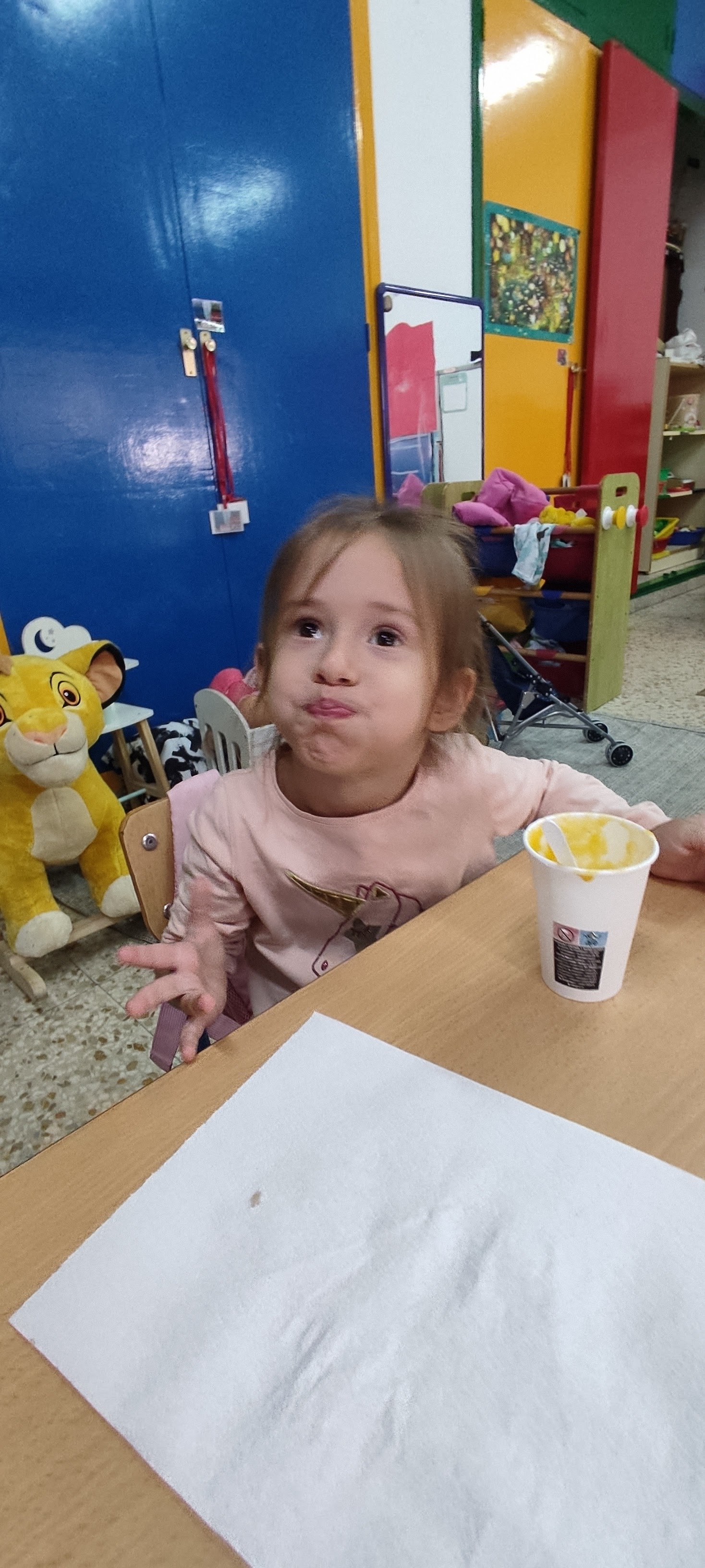 Hemos limpiado bien nuestras mesas, hemos lavado perfectamente nuestras manos, y les hemos dado un agüita también a nuestra calabaza, nuestras patatas, nuestras zanahorias (¿sabíais que estas dos crecen debajo del suelo?) y nuestros puerros. Y a continuación nos hemos puesto a pelar y trocear todo, antes de meterlo en la olla con agua, aceite, sal y (un poquito de) jengibre. Y ya está: un ratito de chup-chup para que nuestras verduras favoritas se pongan blandas, un buen triturado con la batidora y...¡a disfrutar de esta crema de calabaza calentita que nos ha encantado!